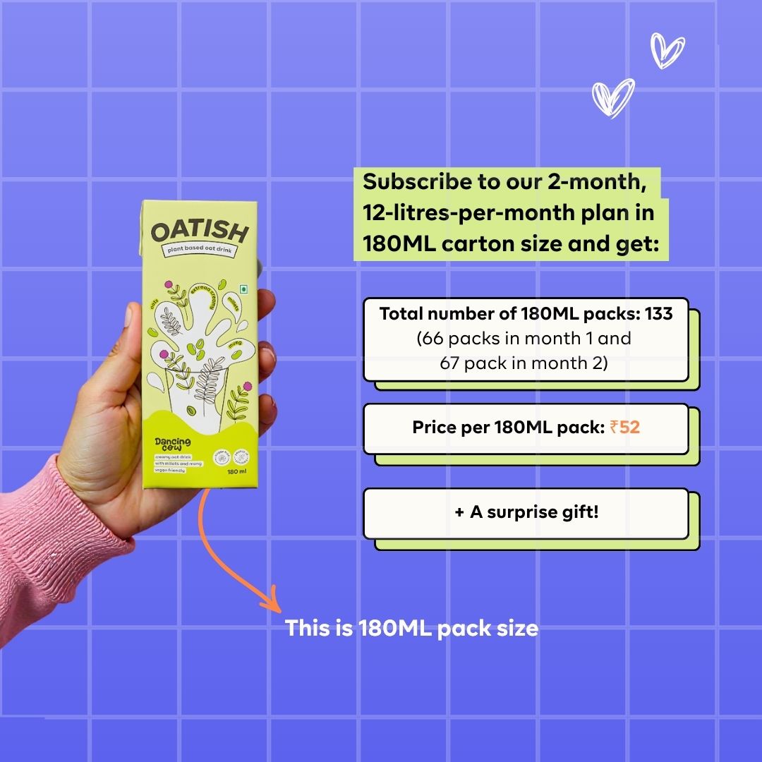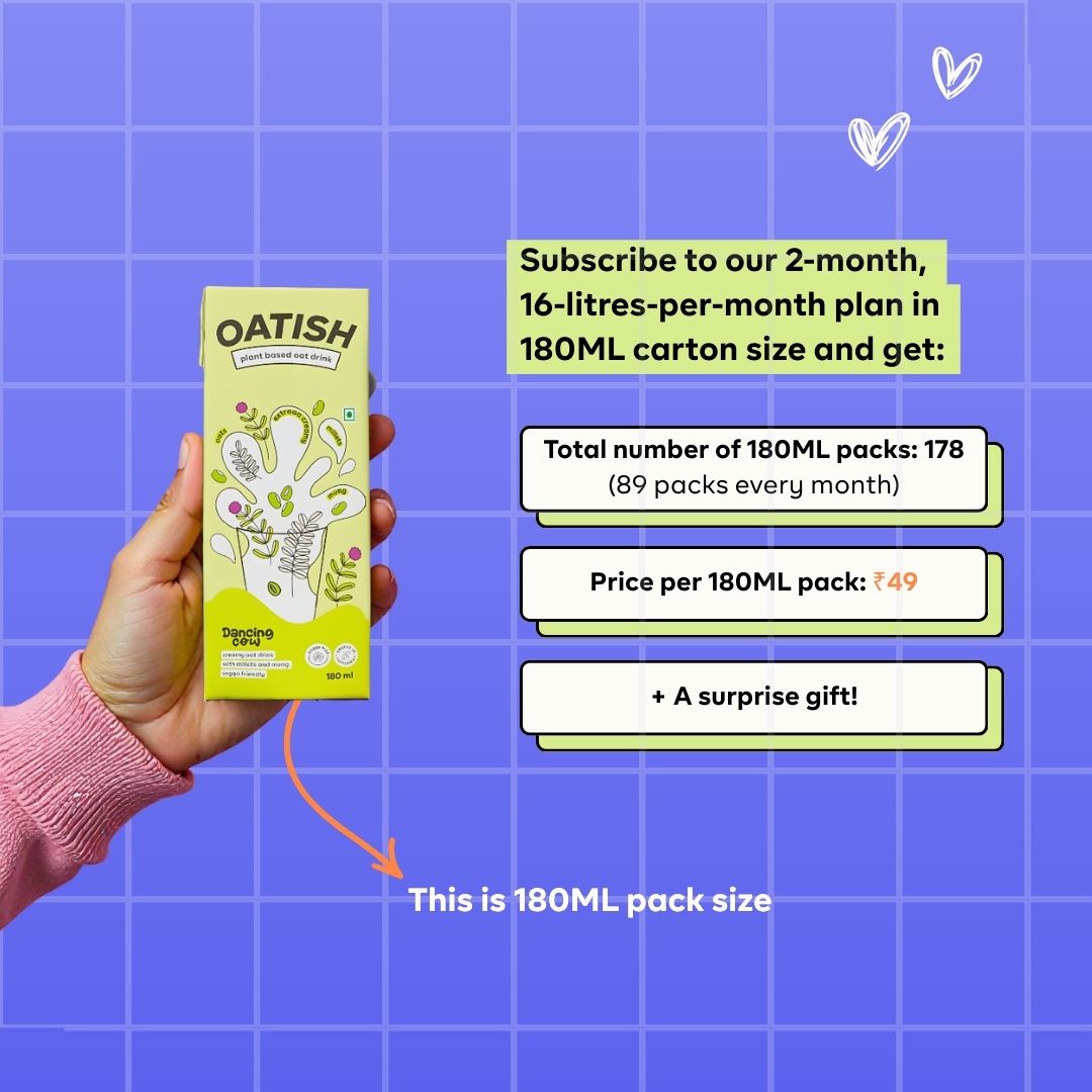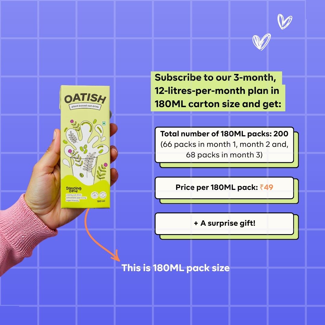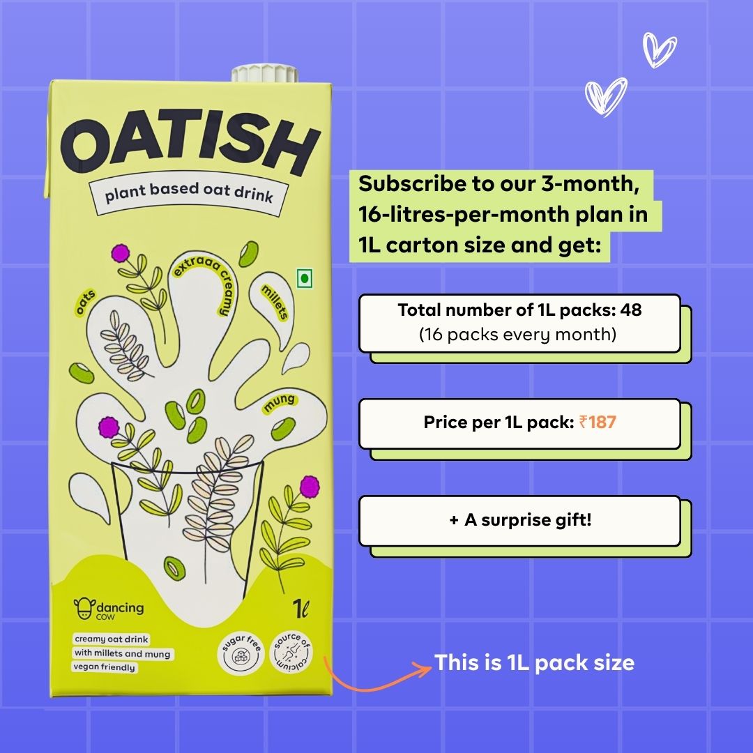 Oatish oat milk boasts a special blend of oats, millets, and mung beans, creating a powerhouse of nutrition. Rich in fiber, protein, and essential nutrients, this unique combination ensures a creamy texture and a burst of goodness in every sip.